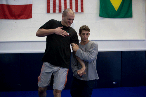 Saturday afternoon Jake and I arrived at Ecole de Budo (beautiful dojo!) for a session of no-gi grappling instruction. The day’s curriculum was composed of leg locks – submissions for the first half and escapes for the second. Right away, my approach to all submissions, not just leg locks, was improved. Tim does a great job of showing you how to get the most power out of your body, stressing the importance of angles in your setup. There are very fine lines between getting the tap and missing it, and these lines were made strikingly clear by attacking the legs, which for me, has been an area of difficulty. Each attack had a corresponding escape, and at the end of the day, Jake and I were able to drill our way through each attack and escape in succession.