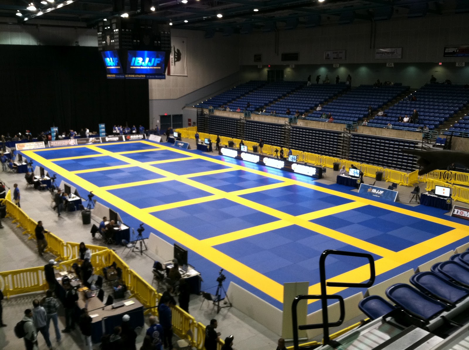 Again I was rather surprised at my level head and calm nerves at such a big venue. Run pretty much on time for my portion of the fights, later on many an empty mat were to be found with black belt divisions dragging well into 8pm at night. By the time me and my opponent Barry Reid fought the air was warm, but not yet over bearing. Rumor had it that the IBJJF did not want to foot $3000 extra a day for AC. It was needed guys… don’t be cheap at the largest tournament in the world!